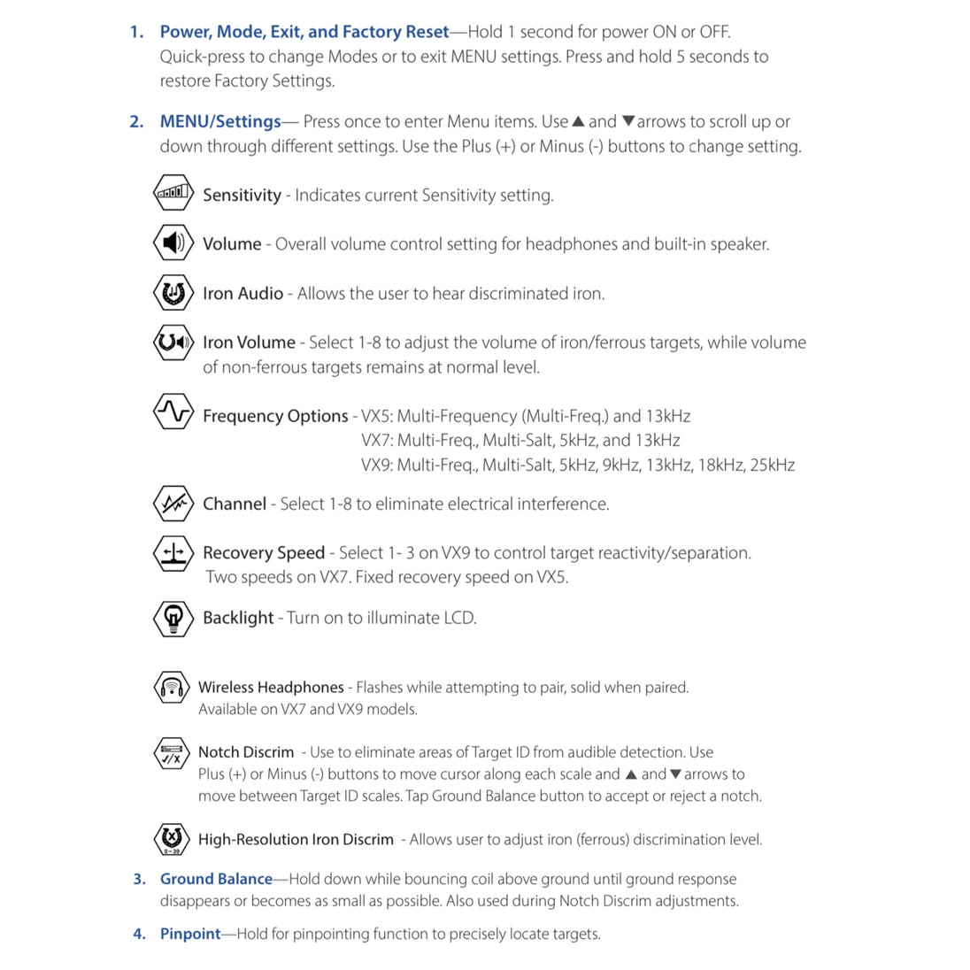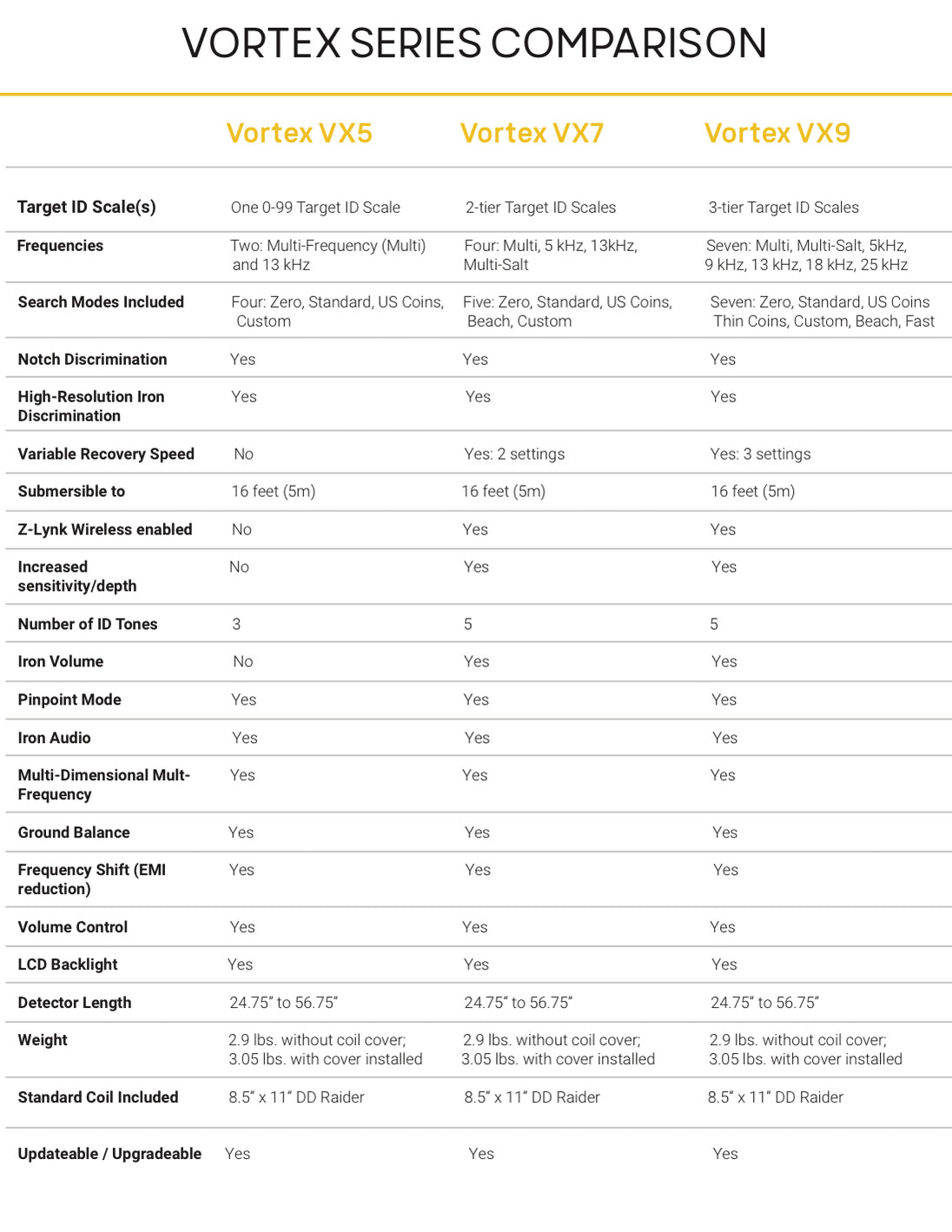 | Auto Ground Balance | Yes | Yes | Yes |