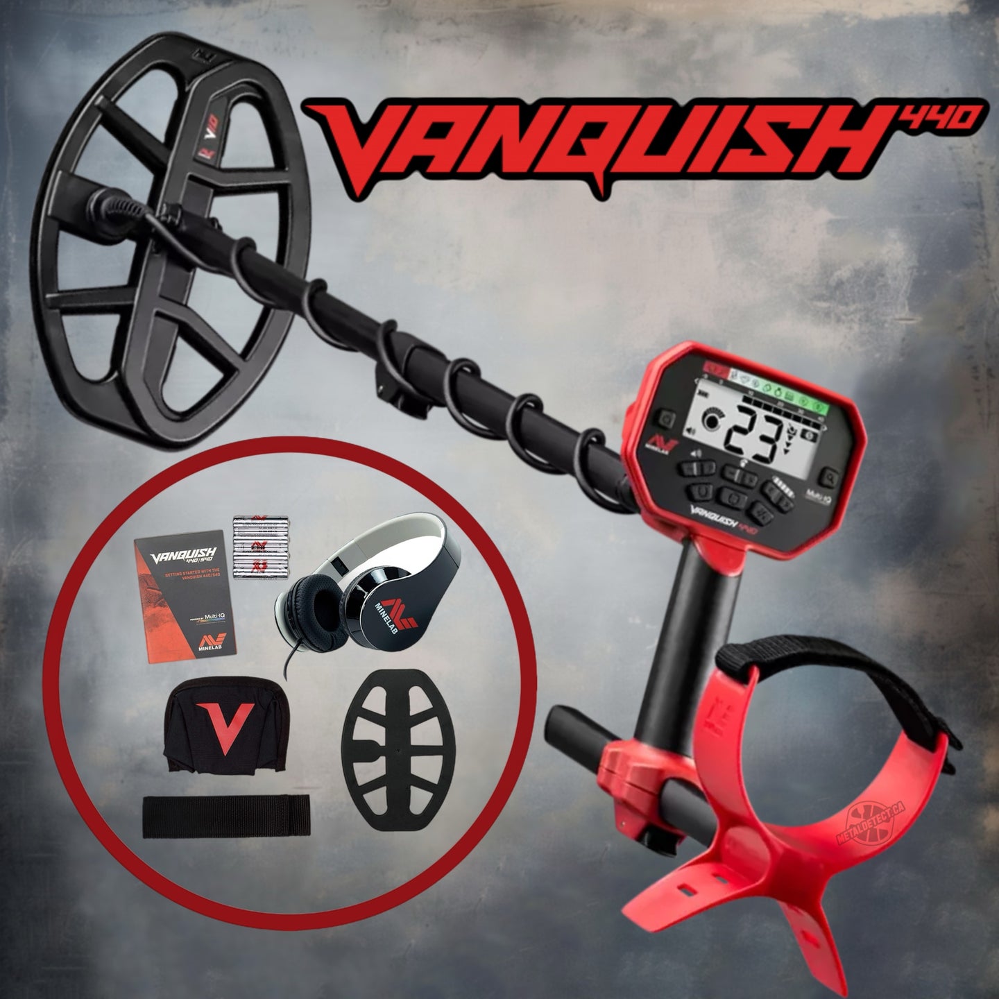 VANQUISH 440: built for the detectorist looking to step up their game. Armed with Multi-IQ technology, waterproof V10 coil, and audio control, the 440 also features pinpoint mode. Perfect for those who demand precision. As simple as it is powerful, the VANQUISH 440’s compact and lightweight construction delivers results — no matter where the hunt takes you.