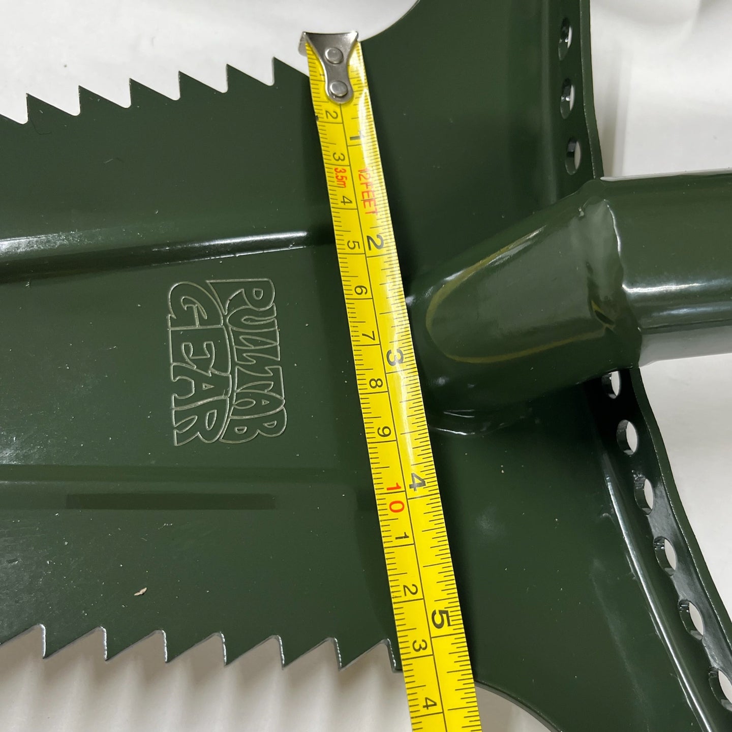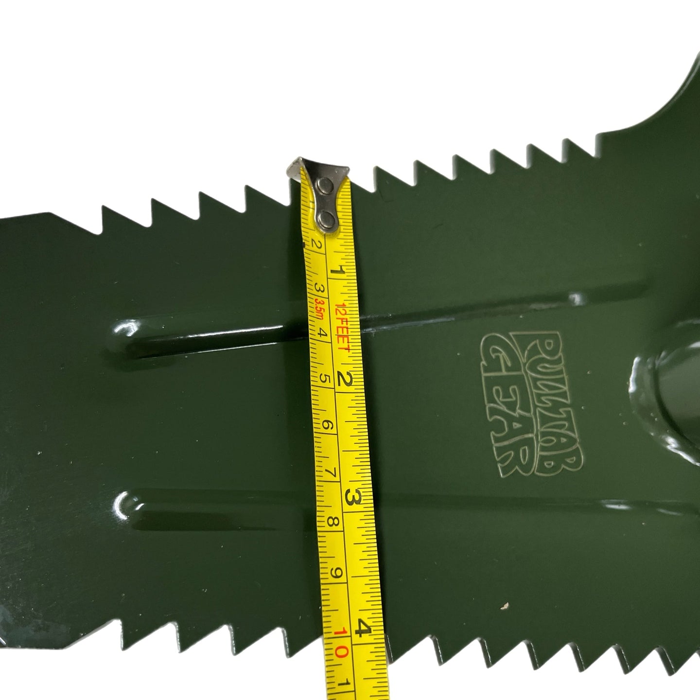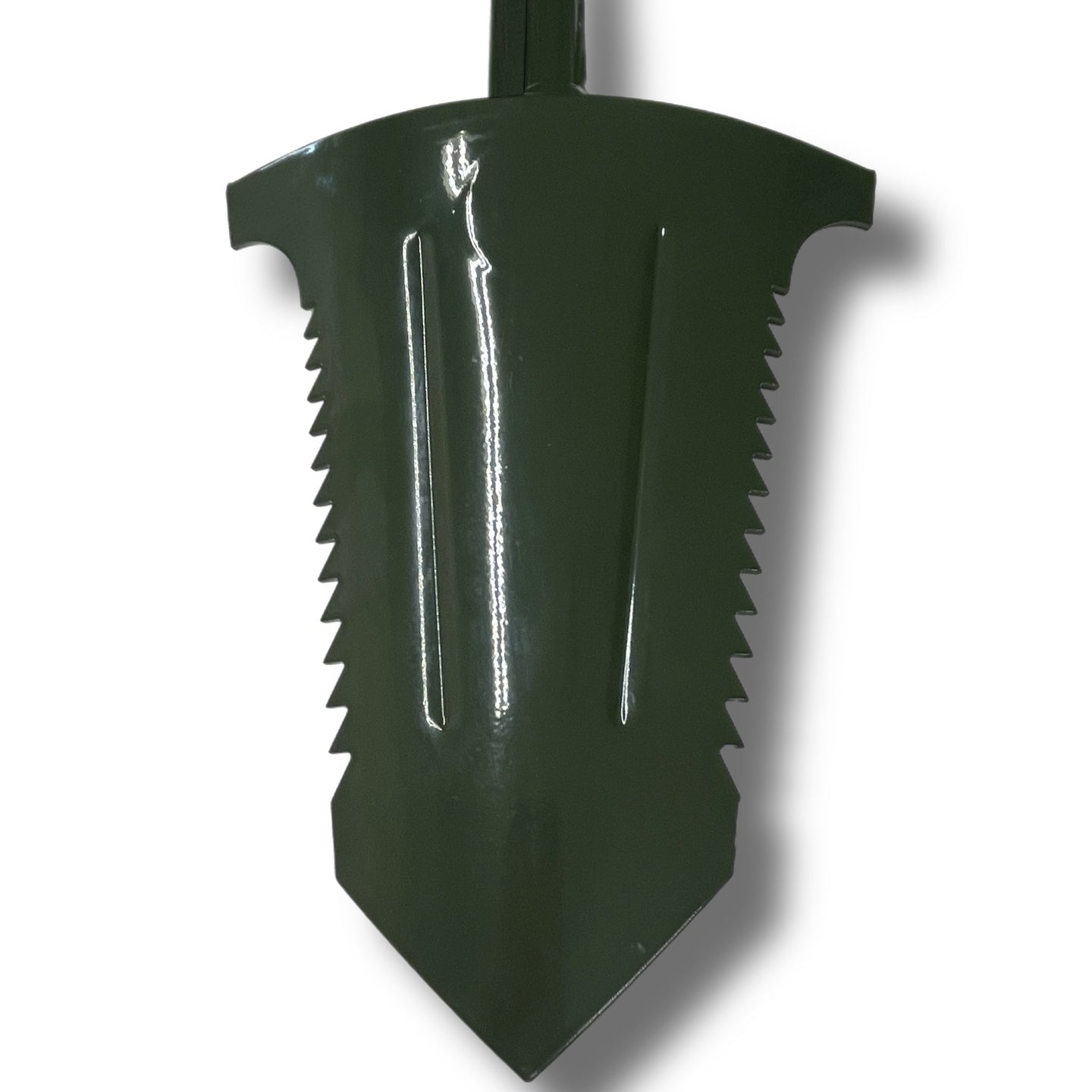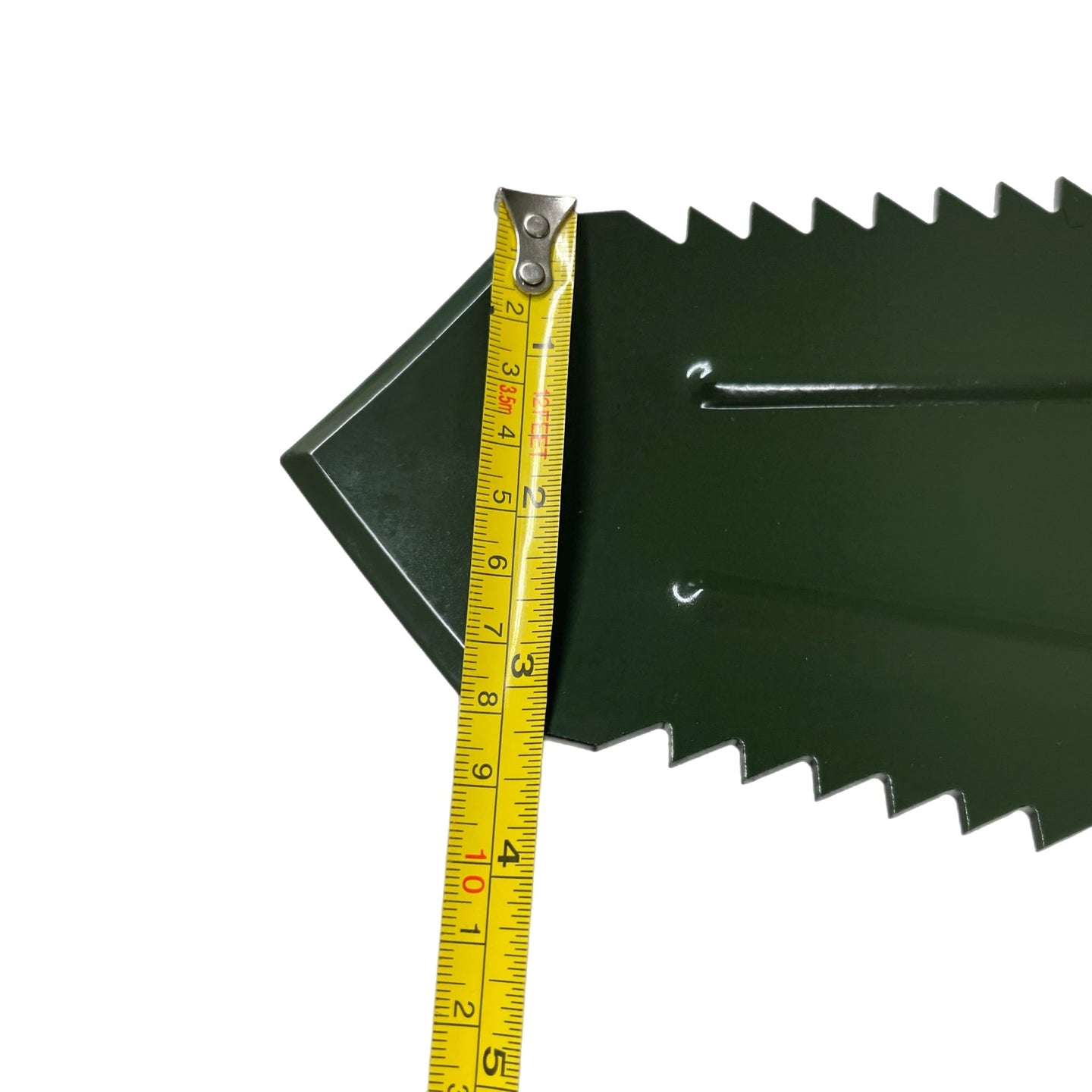 Weighing it at 3lbs (1.36kg), This shovel is light enough to carry and strong enough to cut through stiff roots with the help of the sharp double serrated edges. The wide anti slip pedal will provide more comfort and safety. This shovel was constructed using high quality carbon steel, powder coated in military green.