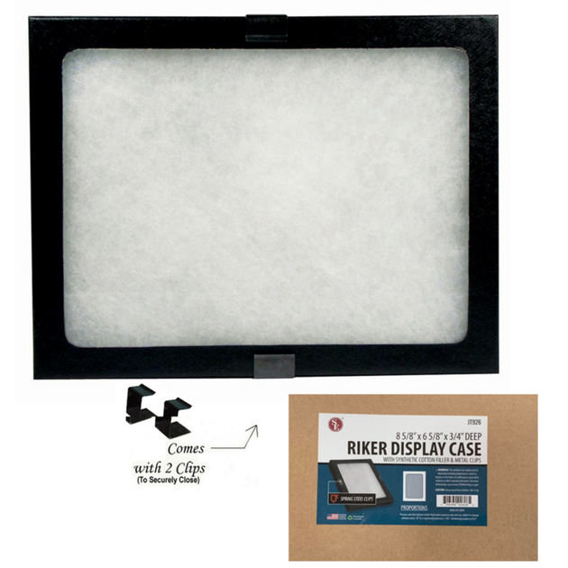 Glass Top Riker Display Box With Metal Clips 8-5/8" x 6-5/8" x 3/4"