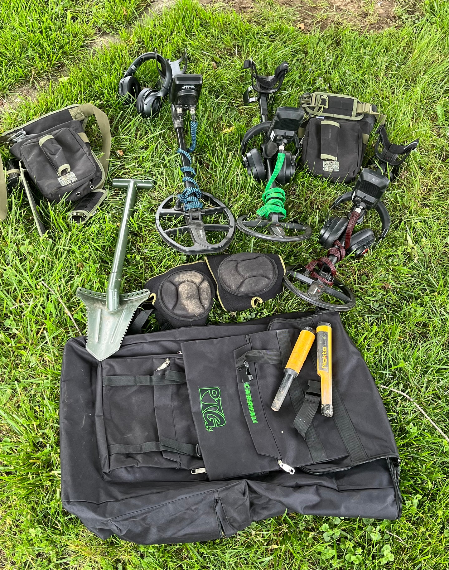 This backpack really does carry it all. Built to last, the PTG backpack can be used to carry a multitude of detecting supplies. For instance, we placed 2 Manticore’s, 1 Legend, 3 sets of wireless headphones, 2 pinpointers, knee pads, 2 PTG versatility pouches, PTG hand digger, gloves and a 28” PTG shovel in this backpack and it still had some space left to add more gear. We weren’t kidding when we called it the PTG CARRYALL! Check out the photos to see all the gear we were able to fit inside. (Note: The handsome and dapper model is 5’9” tall)