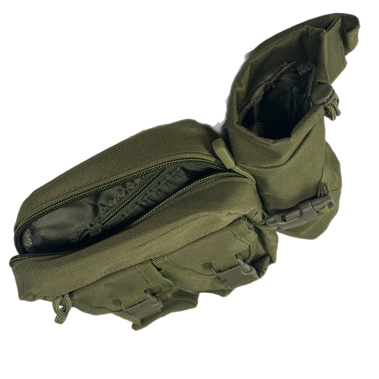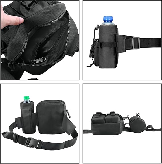 - MULTI POCKET: 1 main pocket, 1 front pocket, 2 front buckle pouches, and 1 detachable water bottle holder pouch