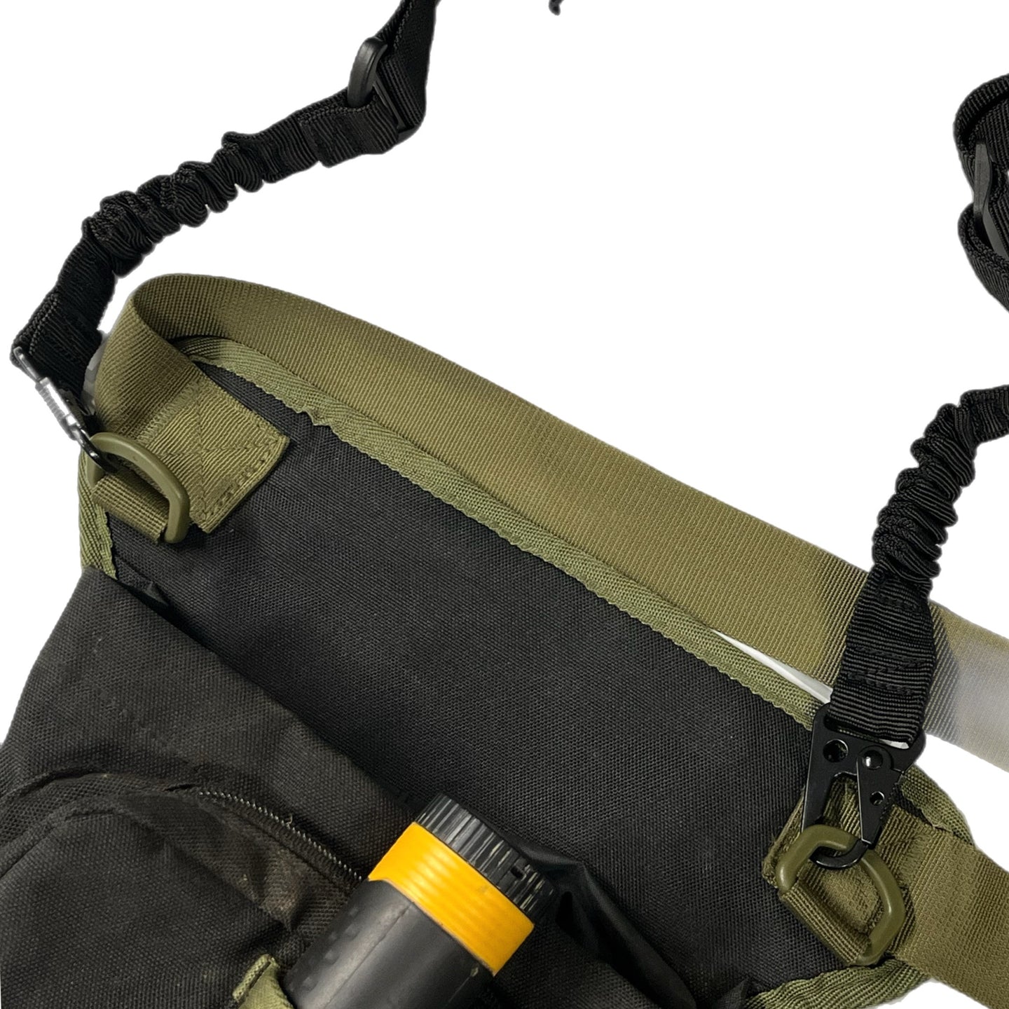 The PTG Support Sling features a cross body bungie that provides added support for your pouch. This results in increased comfort and stabilization, allowing you to detect for longer periods of time without strain from added weight or forever repositioning or pulling up your pouch!