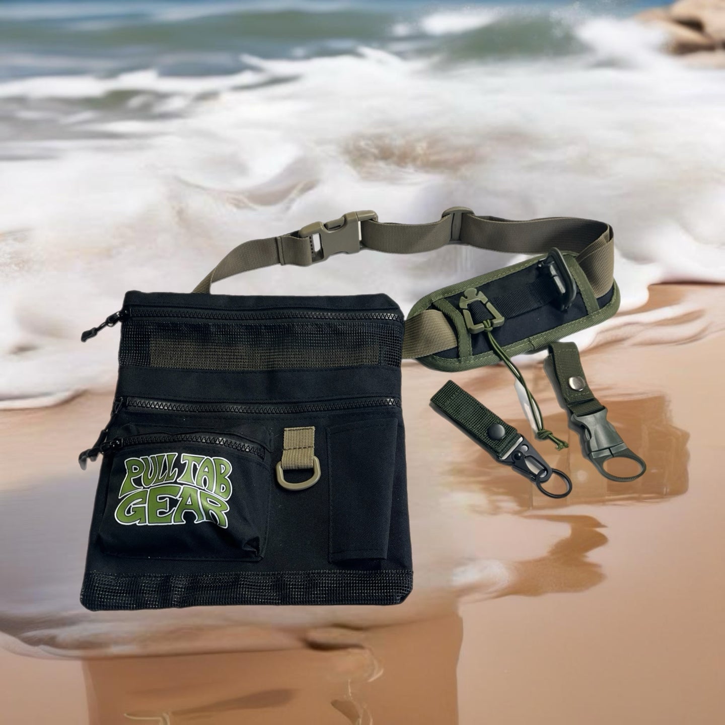The mesh drain screens located at the top front and bottom of the pouch, automatically sift dirt from your finds while land hunting, making it perfect for sandy seeded hunts. The mesh also allow for speedy water flow and easy drainage when you’re water hunting or wading.